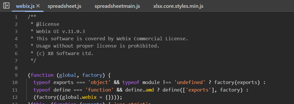 As I could see from your screenshots your file is imported as expected in the example that you have linked ( Webix v.11.3 ), but you need help now with the 11.0.3 version.