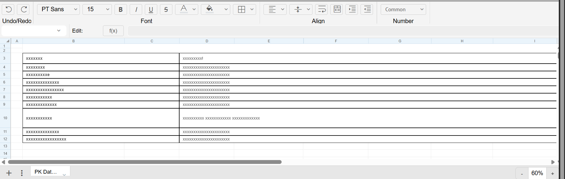 I also included the xlsx.core.styles.min.js file that you shared earlier in the chat. However, I am still seeing the Excel output formatted incorrectly in my application, as shown in the screenshot below.